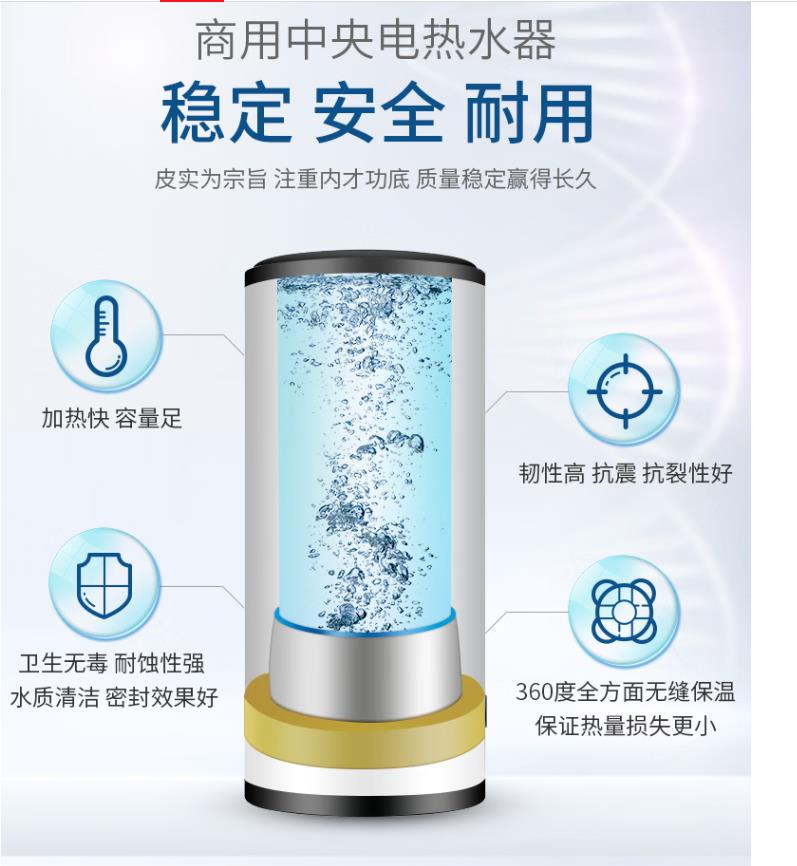 1、水箱內膽采用1.0-2.5mm厚食品級的SUS304/316L不銹鋼,不污染水質,用水更安全。