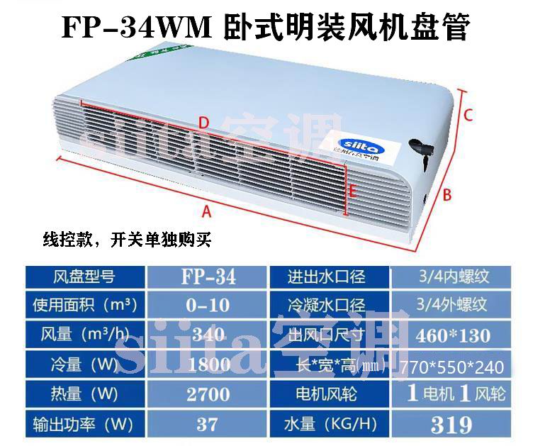 德州春意FP-34WA臥式明裝風(fēng)機(jī)盤管核心性能參數(shù)